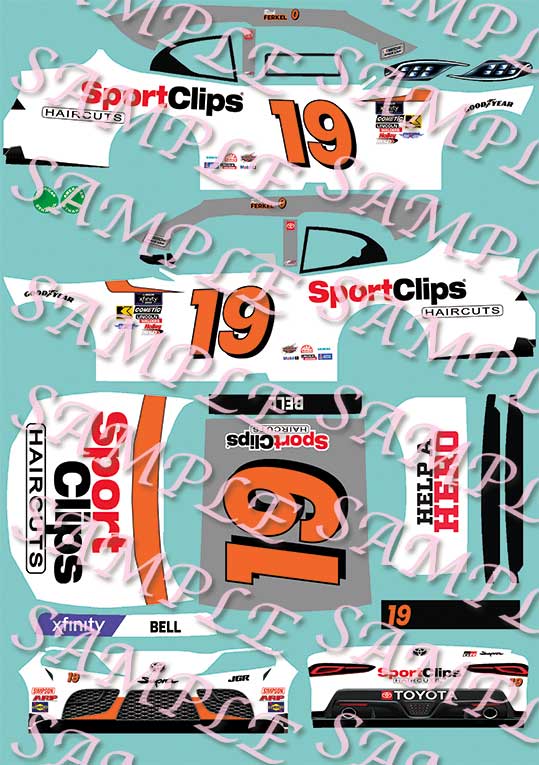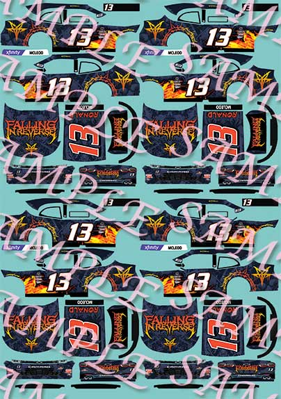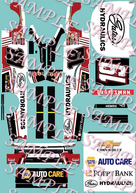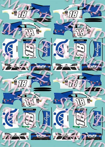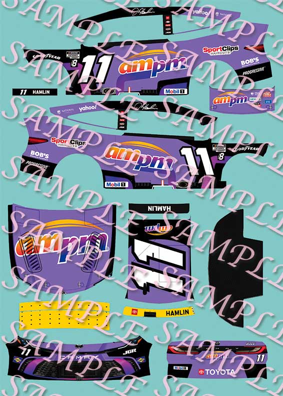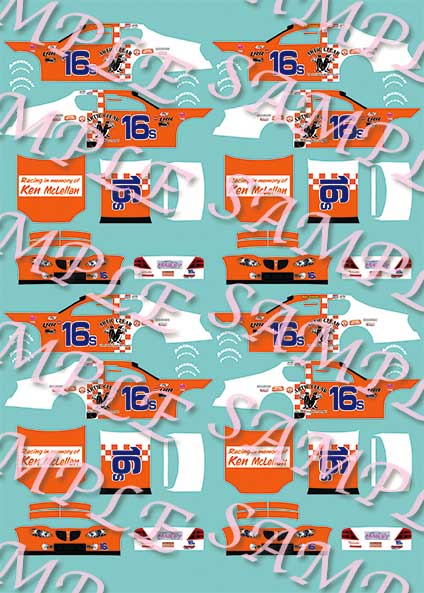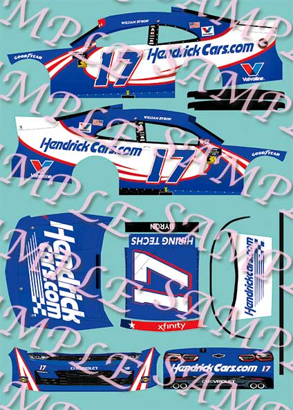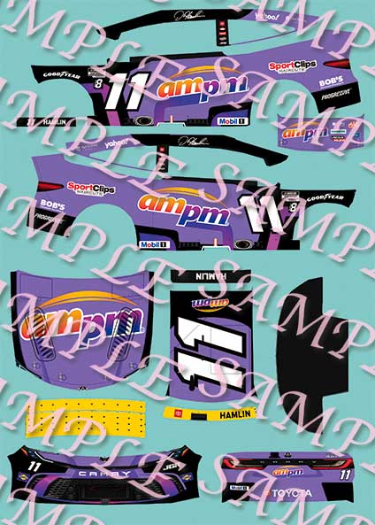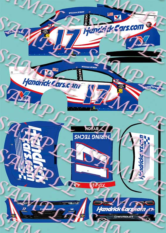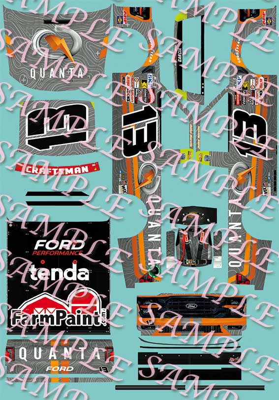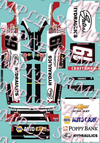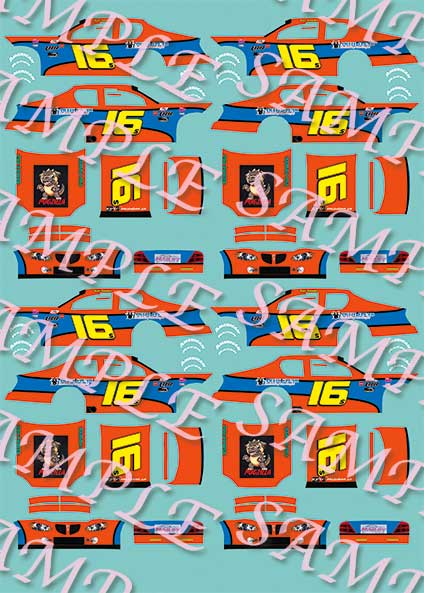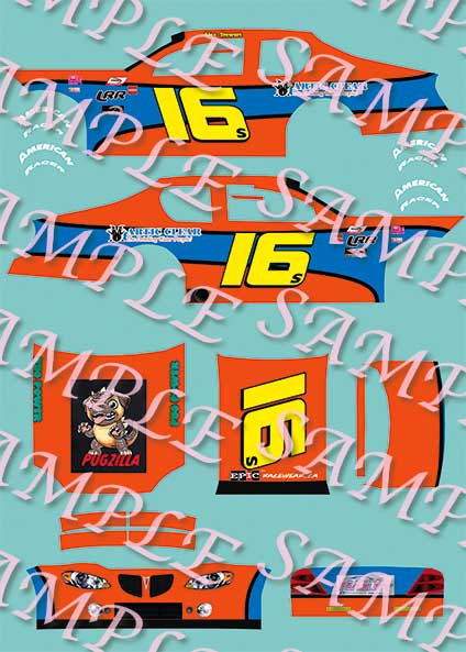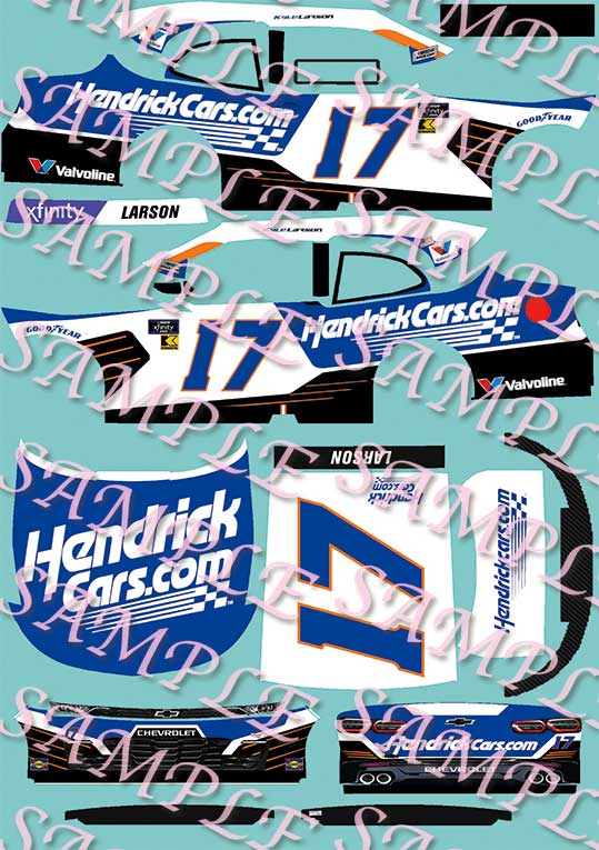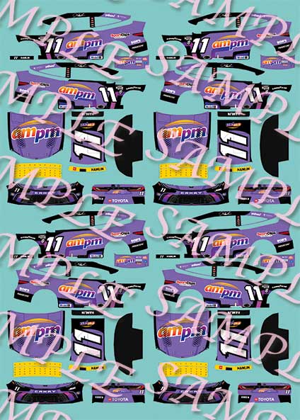 Click on each underlined link to see a representation of the standard decal. I have previews for 1/24, 1/32 and 1/64. Due to space limitations I dont have previews for the 1/10, 1/12, 1/18 or 1/43, but you can what they look like from the 1/24 decal.