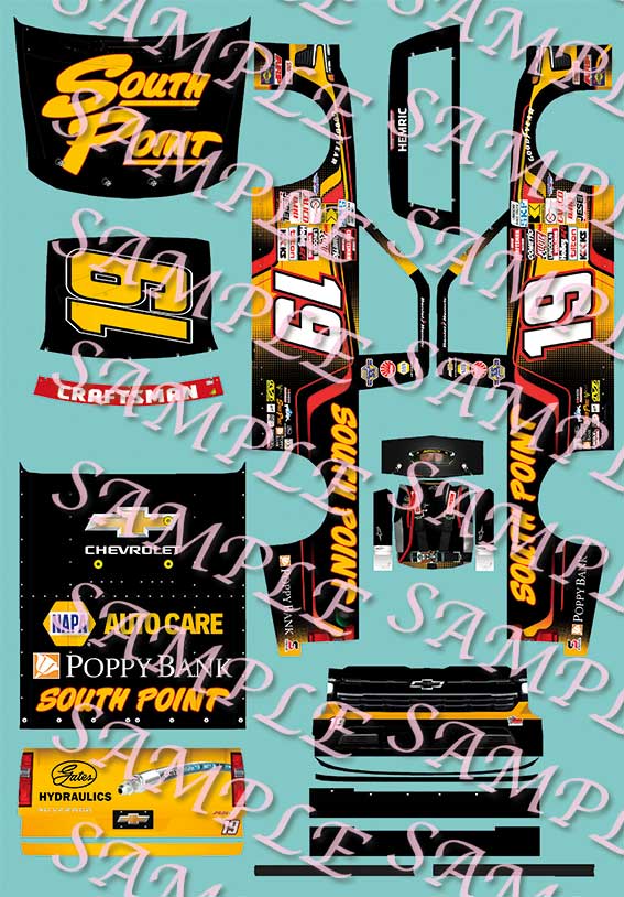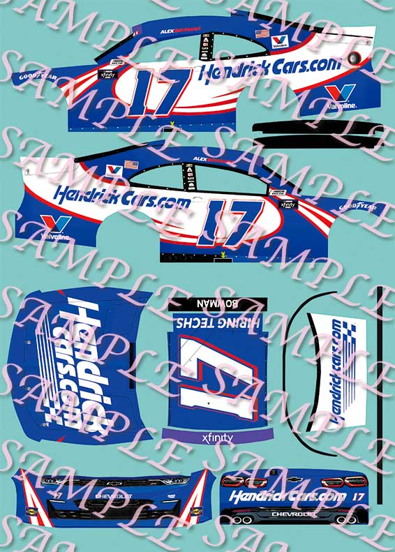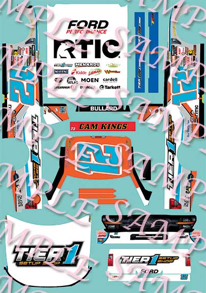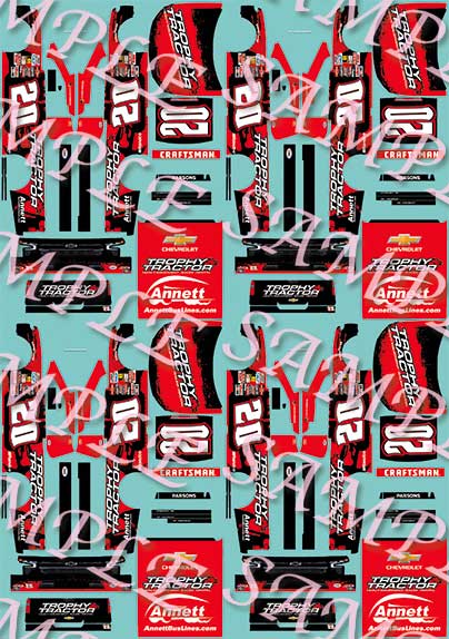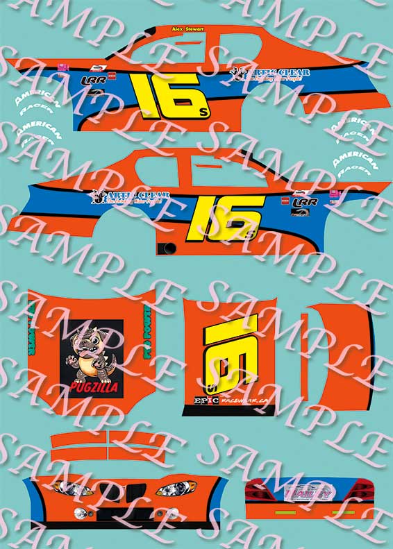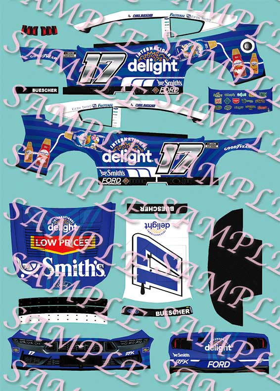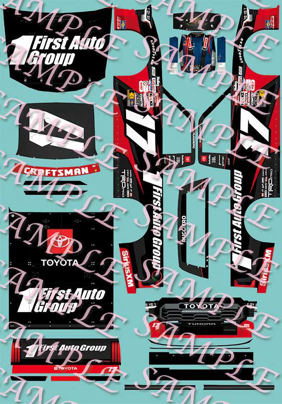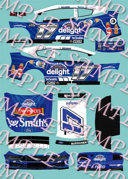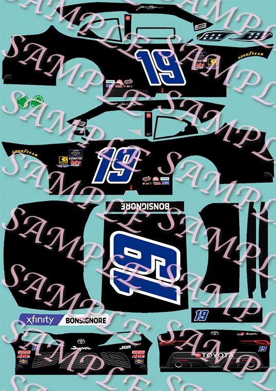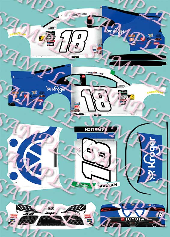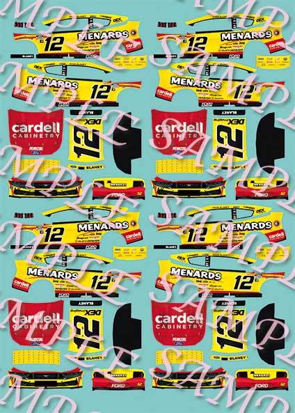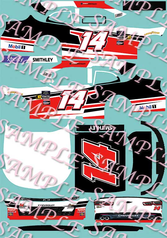 Click on each underlined link to see a representation of the standard decal. I have previews for 1/24, 1/32 and 1/64. Due to space limitations I dont have previews for the 1/10, 1/12, 1/18 or 1/43, but you can what they look like from the 1/24 decal.