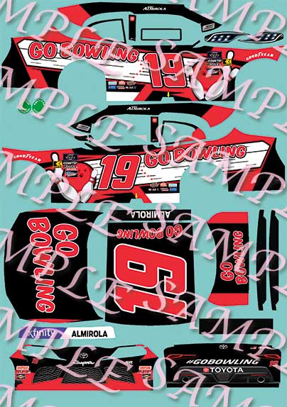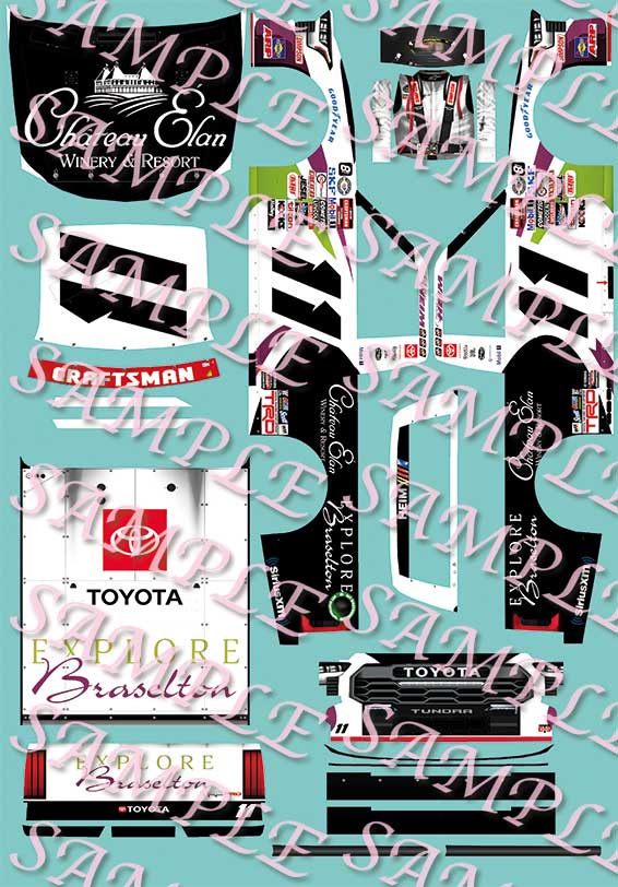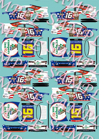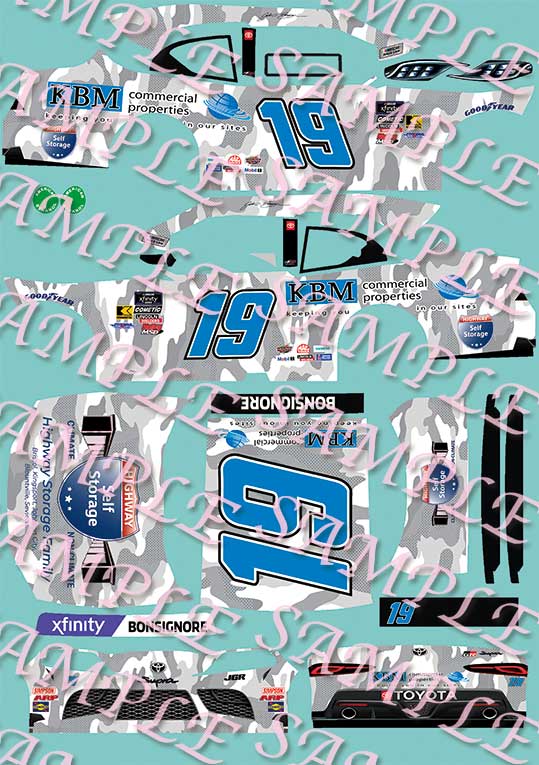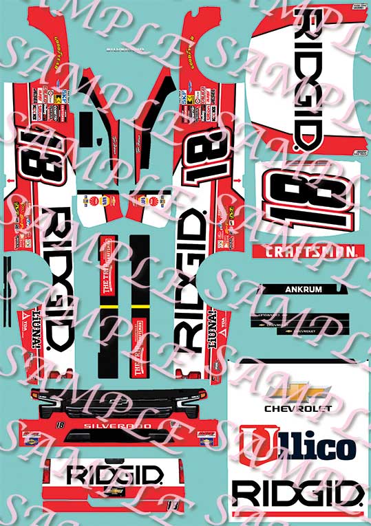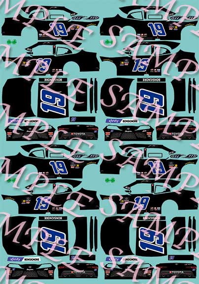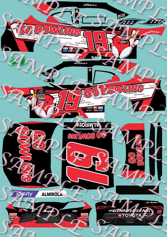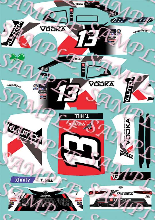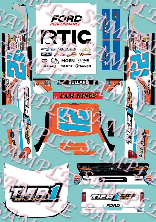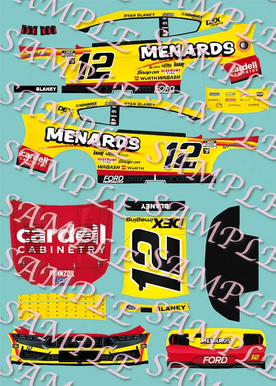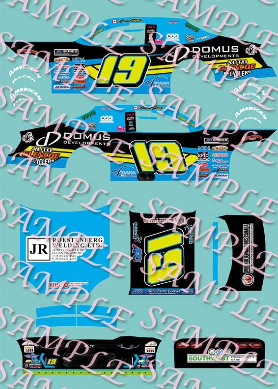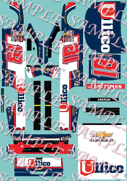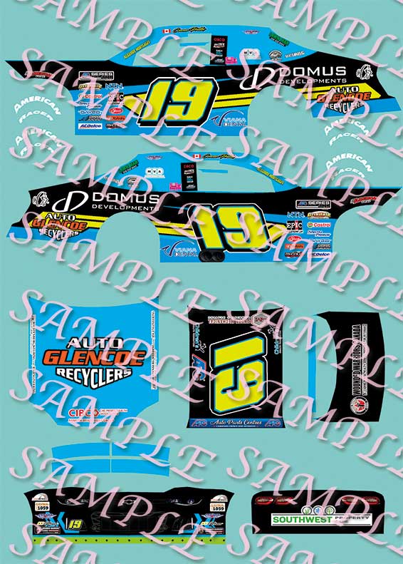 Click on each underlined link to see a representation of the standard decal. I have previews for 1/24, 1/32 and 1/64. Due to space limitations I dont have previews for the 1/10, 1/12, 1/18 or 1/43, but you can what they look like from the 1/24 decal.