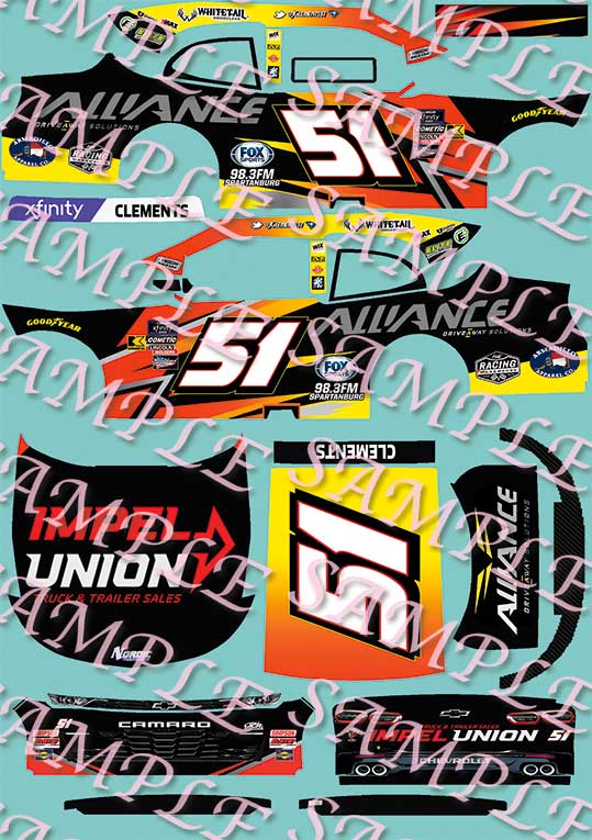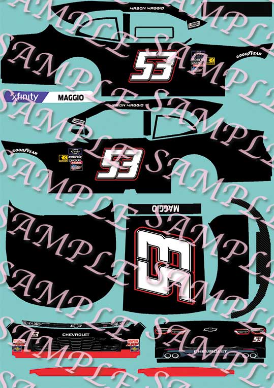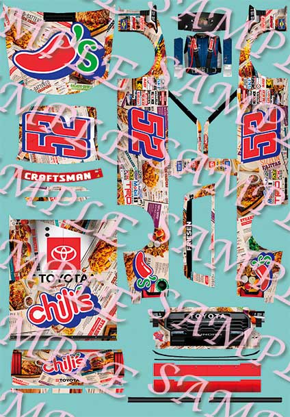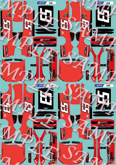 Click on each underlined link to see a representation of the standard decal. I have previews for 1/24, 1/32 and 1/64. Due to space limitations I dont have previews for the 1/10, 1/12, 1/18 or 1/43, but you can what they look like from the 1/24 decal.