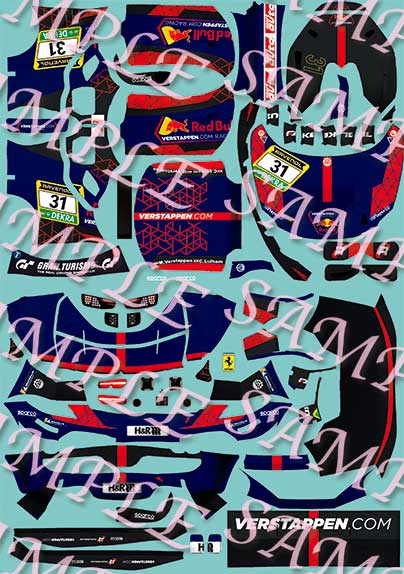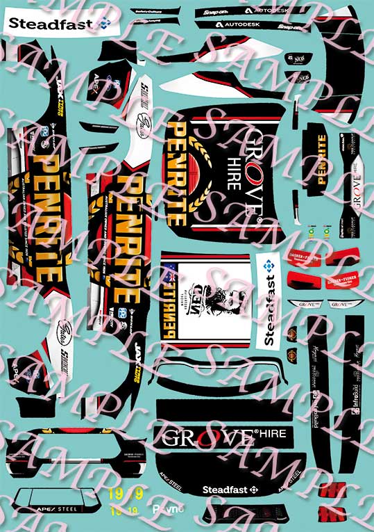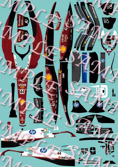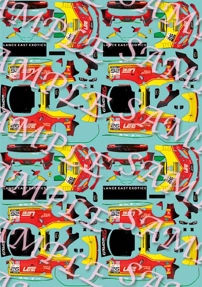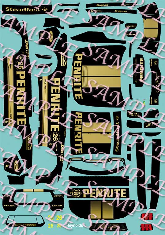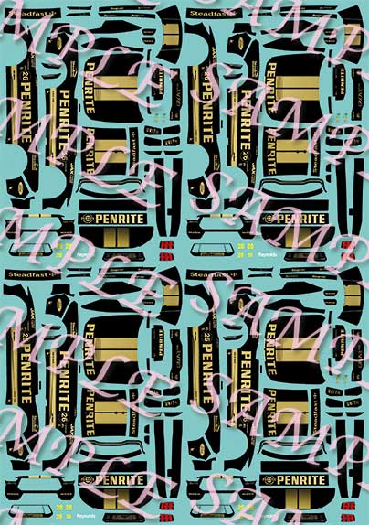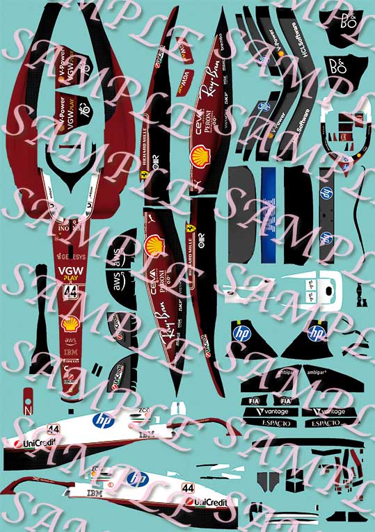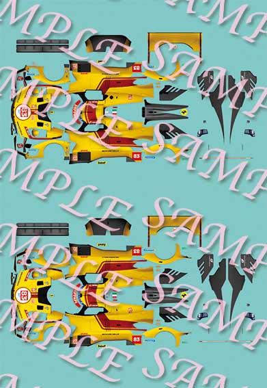 Click on each underlined link to see a representation of the standard decal. I have previews for 1/24, 1/32 and 1/64. Due to space limitations I dont have previews for the 1/10, 1/12, 1/18 or 1/43, but you can what they look like from the 1/24 decal.